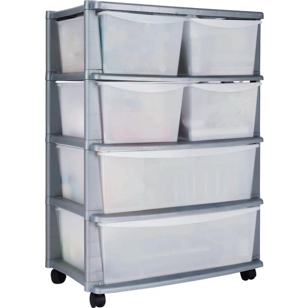 Buy HOME 6 Drawer Plastic Wide Storage Tower Unit Silver at Argos.co