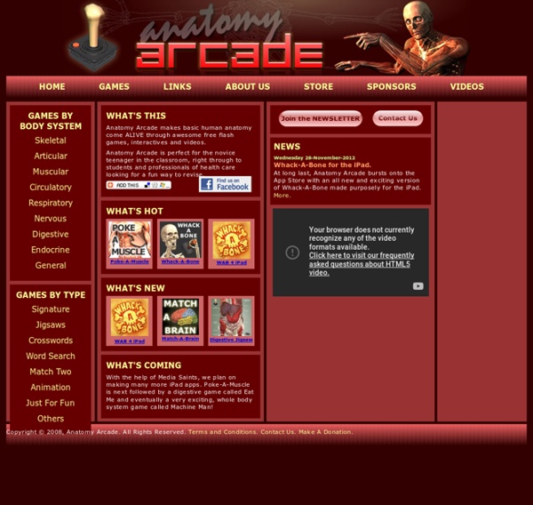 Web Anatomy Arcade Makes Basic Human Anatomy Come Alive Through Awesome Free Flash Games, Interactives And Videos.