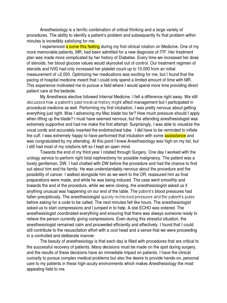 4. ERAS Personal Statement Anesthesia Medicine