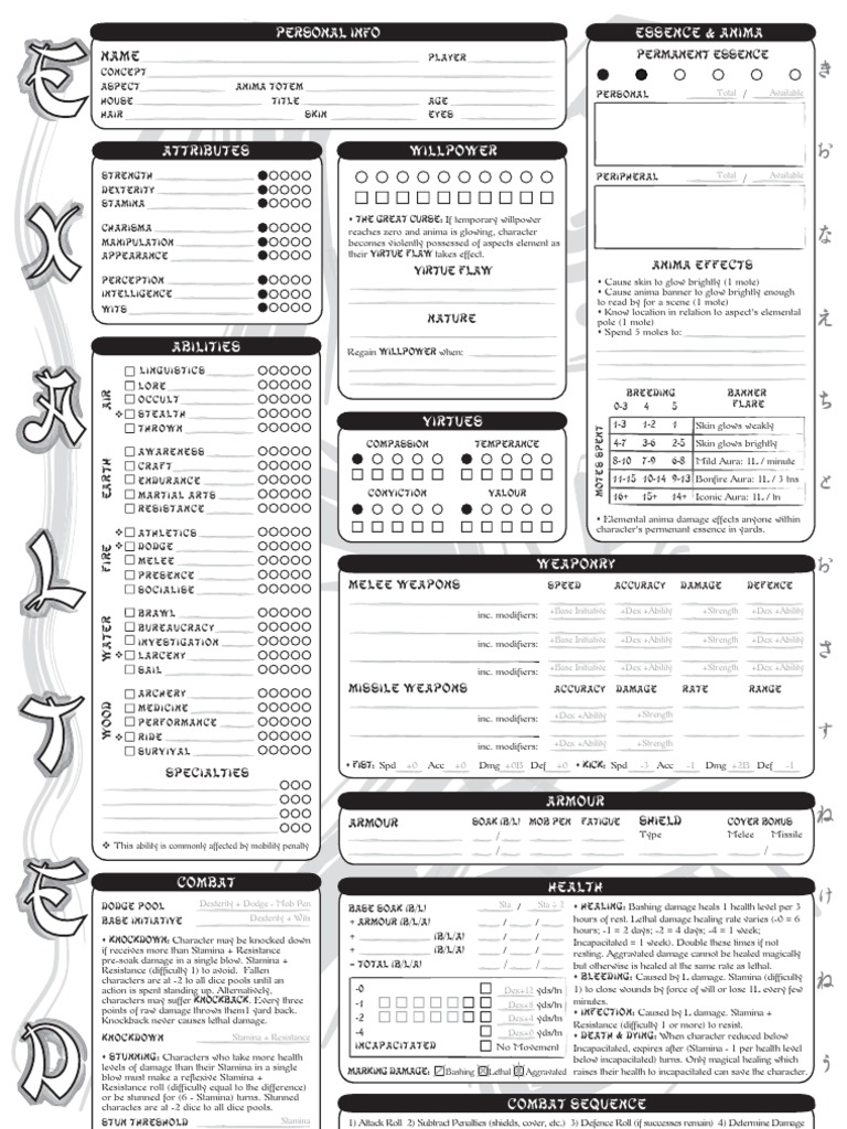 Exalted DB Sheet PDF Gaming Role Playing Games