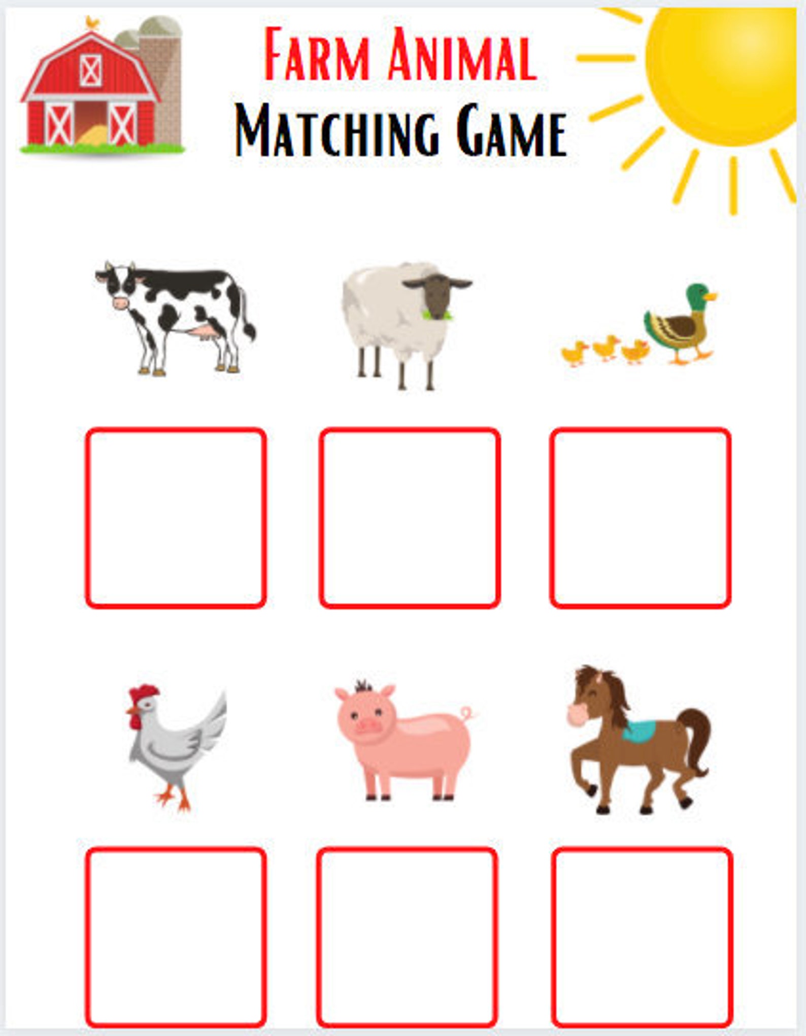 Farm Animals Matching Printable