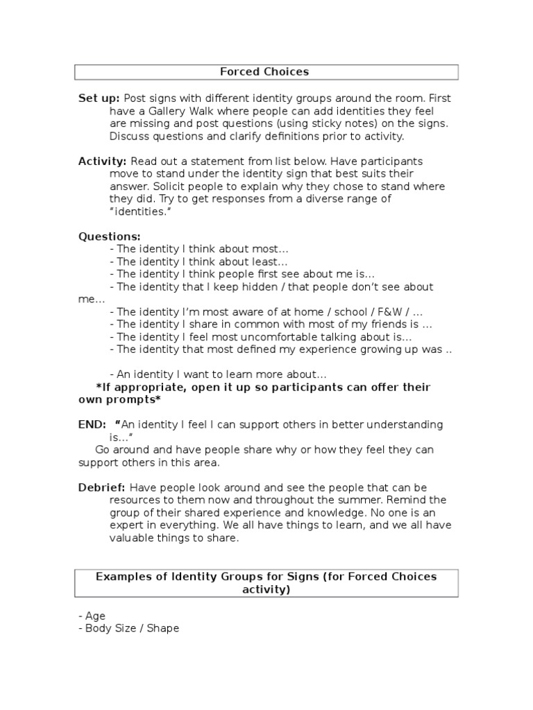 forced choices activity