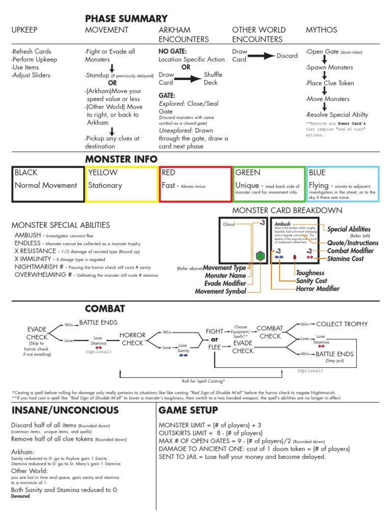 Arkham Horror Cheat Sheet Leisure Activities Games Of Mental Skill