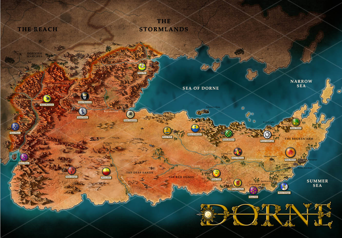 Dorne Map Game of thrones sigils, Game of thrones map, Game of