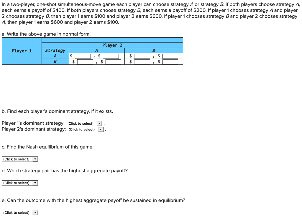 If both players choose strategy a, each earns a payoff of $400. Web answered • expert verified. Ad the best free games compared. If both players choose strategy. Register for free and start playing.