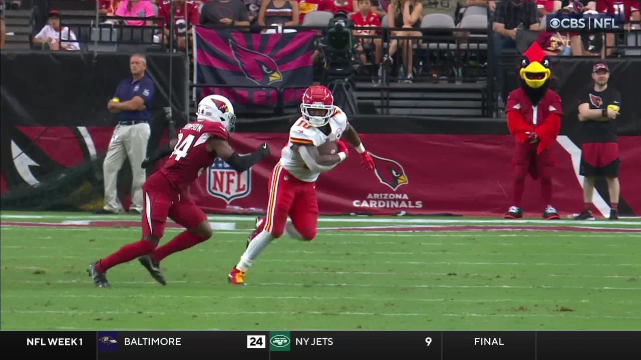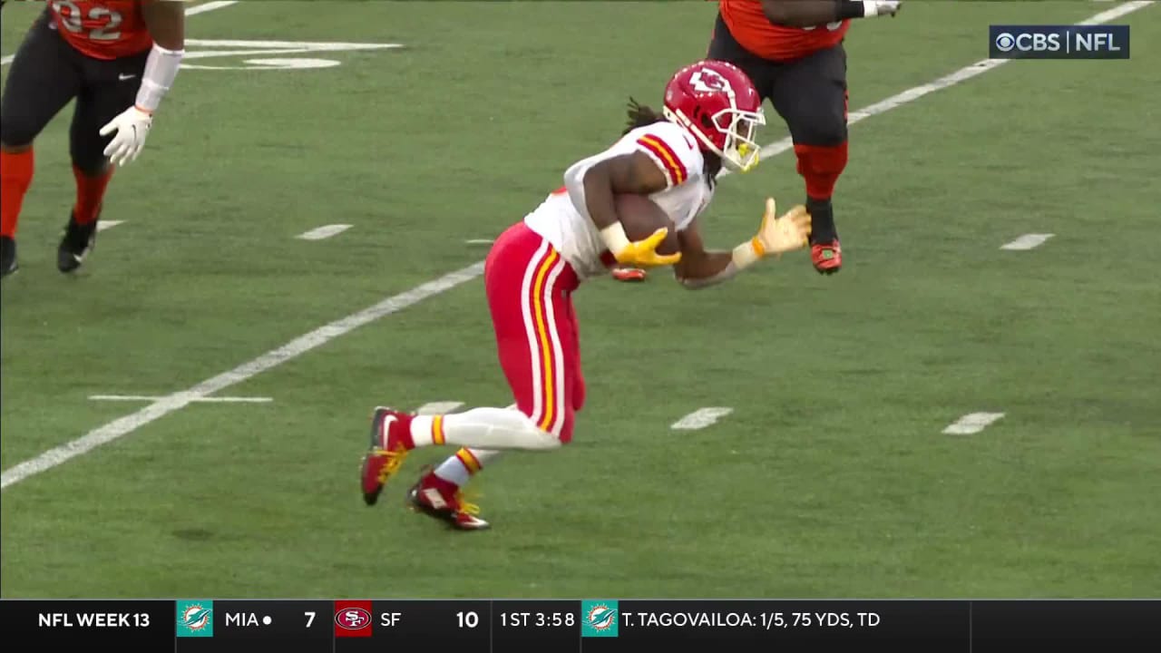 Kansas City Chiefs running back Isiah Pacheco's first catch of game