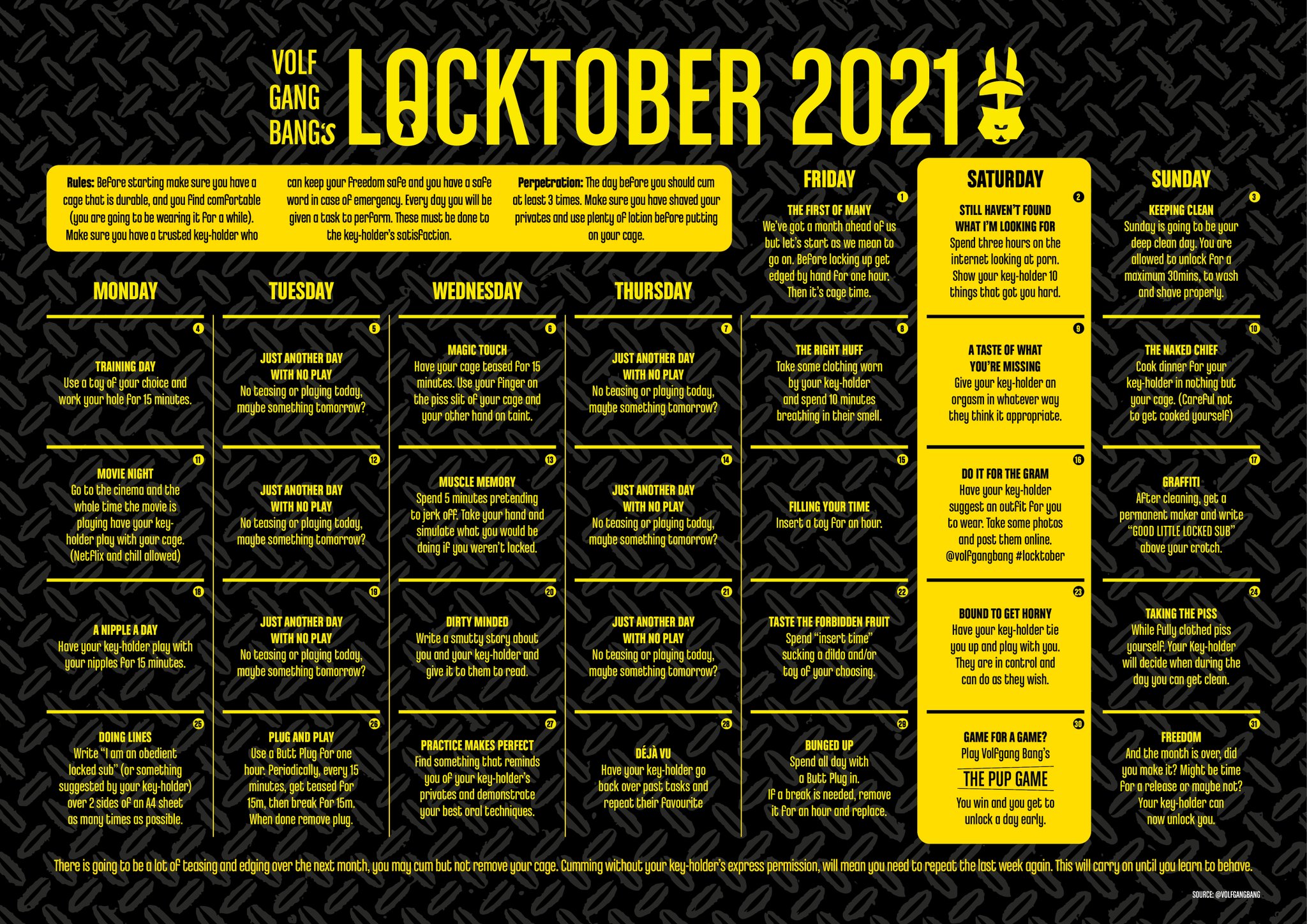 Web (new)chaster event page currently featuring locktober 2023; Elle xthe term locktober refers to a viral challenge throughout october, designed to take. Web the growing trend of locktober, a bdsm practice, is men locking their junk up in a cage and handing the keys off to a willing partner for an entire month of october. How two weeks in chastity.