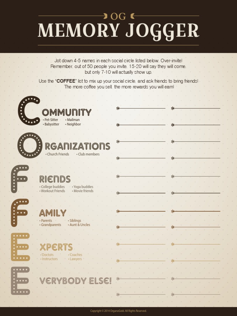 Memory Jogger Sheet PDF
