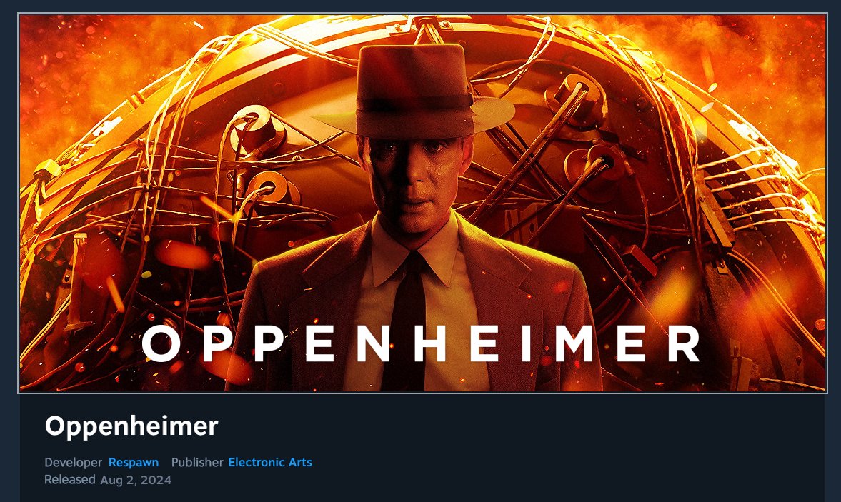 Real Fake Video Games on Twitter "Oppenheimer [Steam] (2024