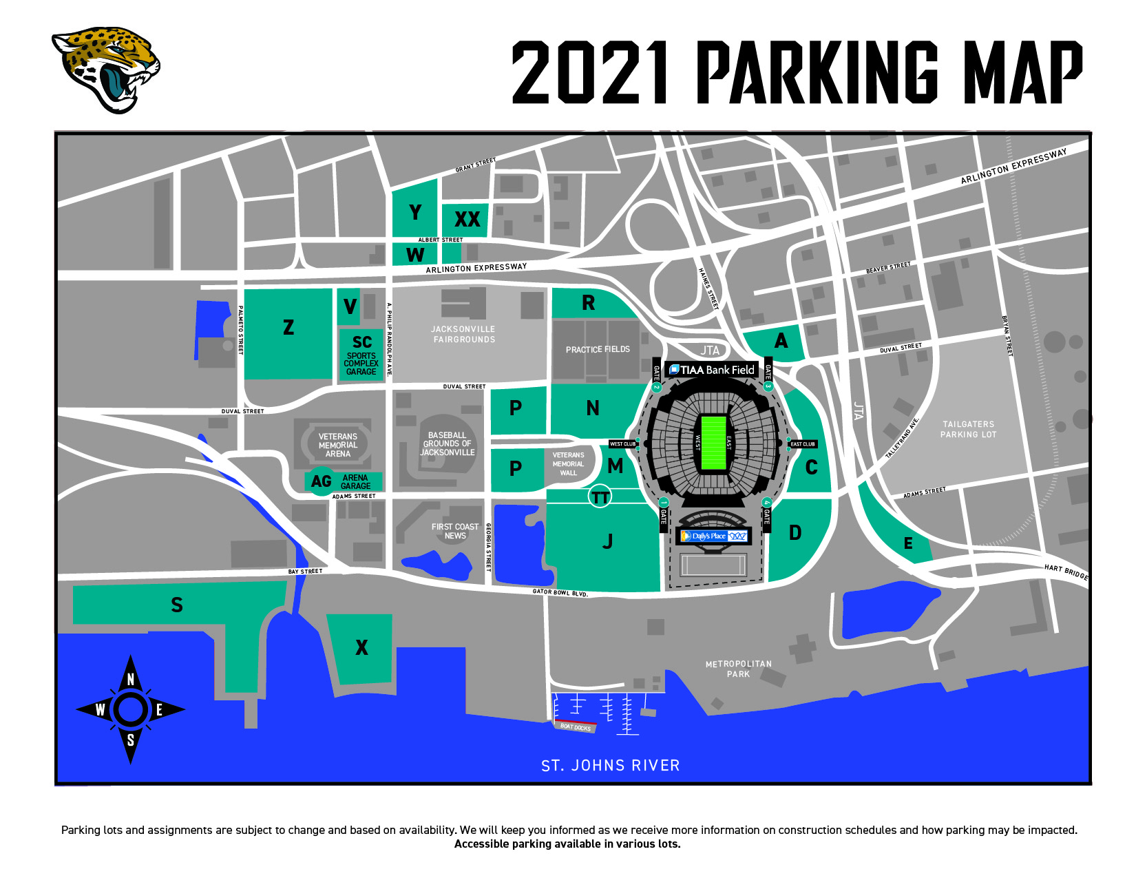 2021 Jaguars Season Parking Map