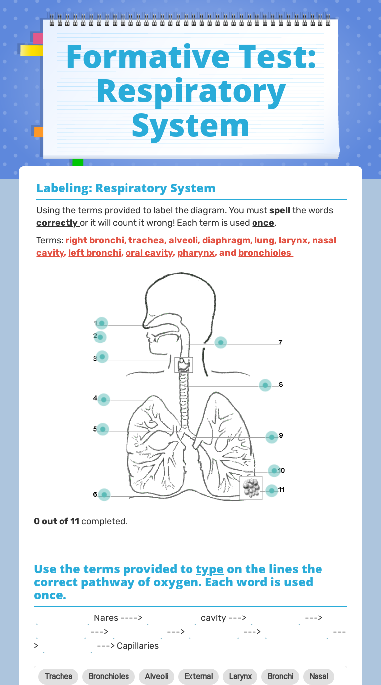 Formative Test Respiratory System Interactive Worksheet by Sandra