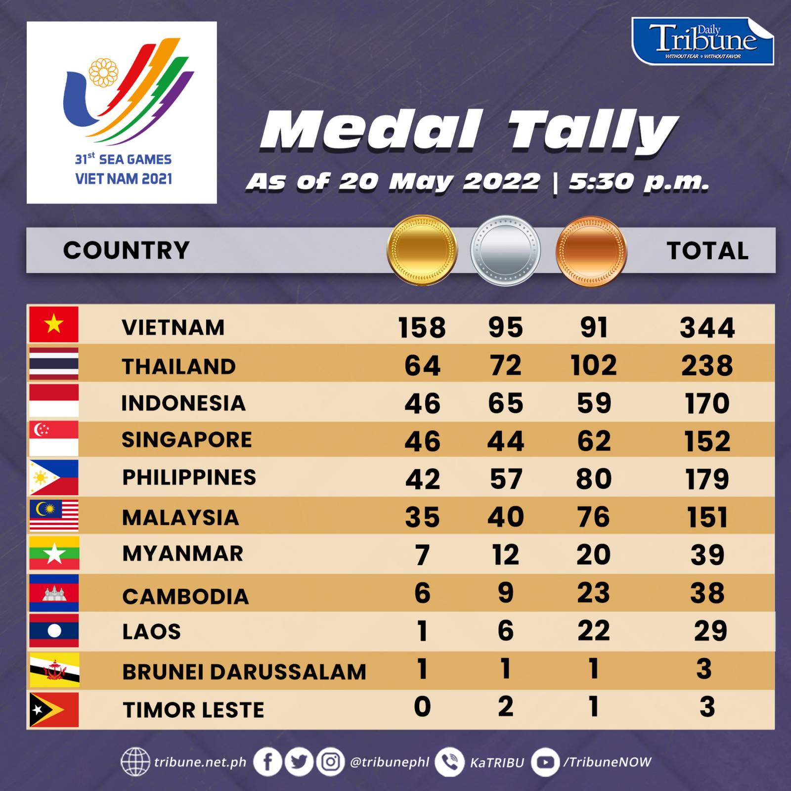 Sea Games Medal Tally as of May 11, 3pm New Straits Times Malaysia