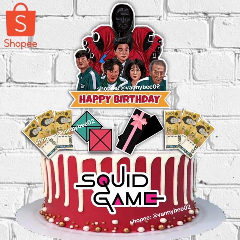 One icing sheet has 1 image printed with edible ink on it. Paper (in red, black)scissorsglue stick. Get deals and low prices on squid game cake topper at amazon Web squid game personalised birthday cake topper glitter/mirror card cake decoration any name. Web squid game, squid game cake topper, squid game banner, squid game party decor, squid game party supplies,.
