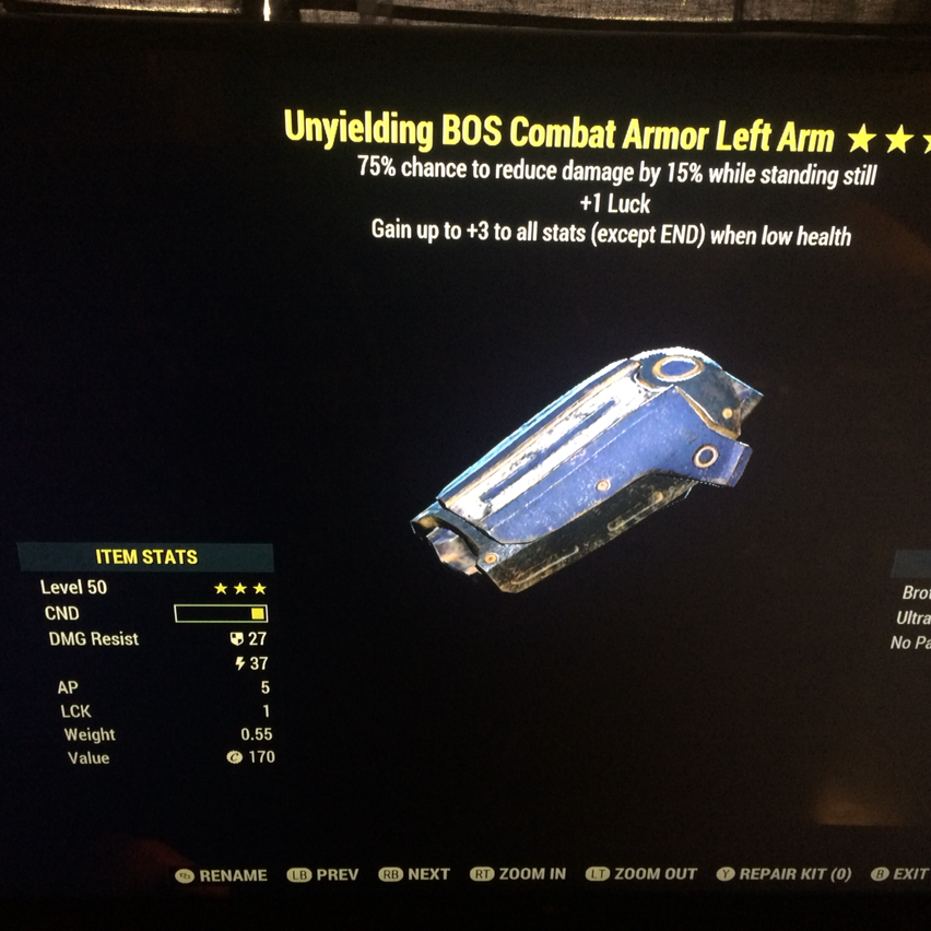 Apparel unyielding sentinel full bos combat armor set Game Items