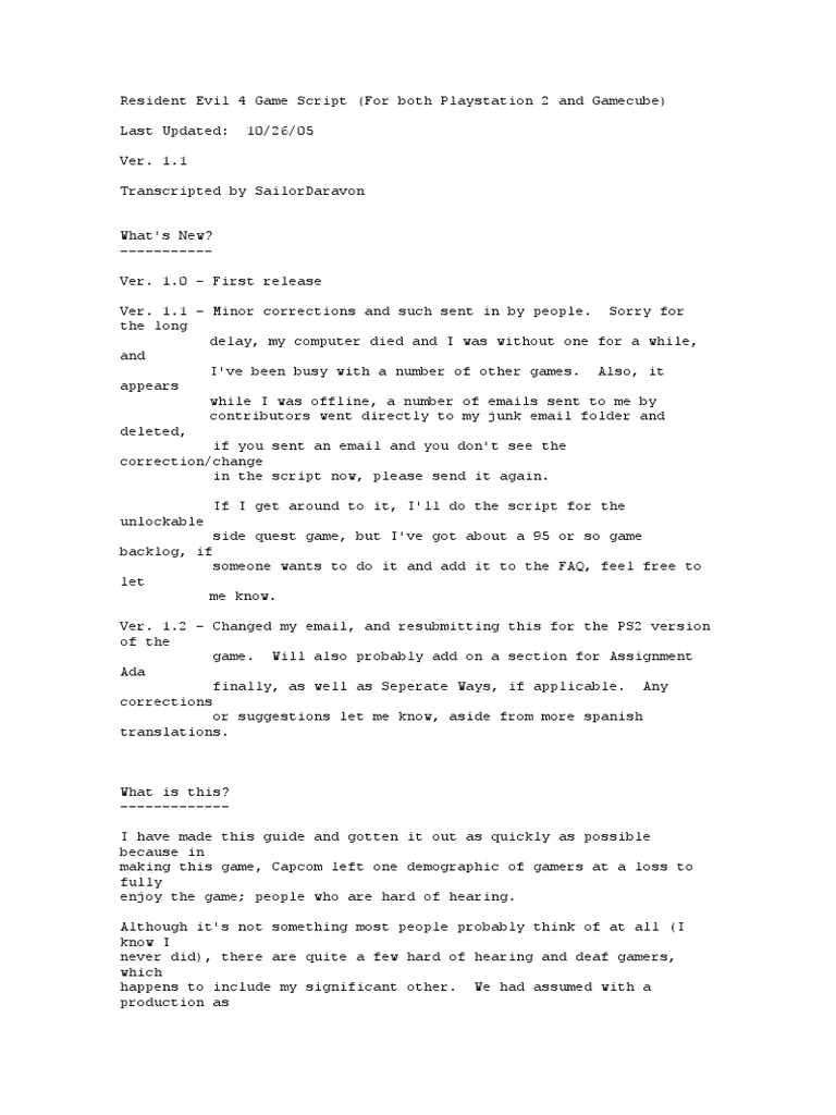 Resident Evil 4 Game Script Leisure Sports Free 30day Trial Scribd